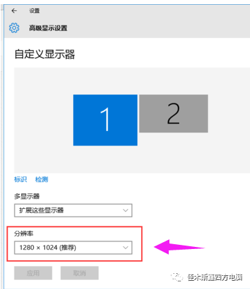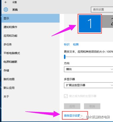 分別選擇顯示器1和顯示器2 ,點擊高級顯示設置