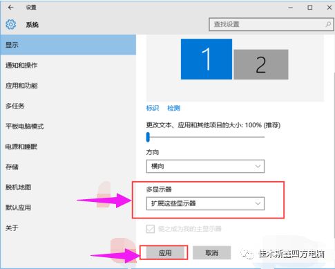 多顯示器那邊選擇擴展這些顯示器。點擊應用。