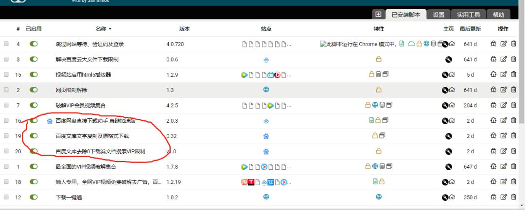 之前推薦過的油猴插件不知你們還記得嗎 ?(如果忘記 ,請翻一下曆史推送再學習一下哦,今天要用到油猴插件的知識)這個油猴可是個神器 ,仔細觀察 ,你會發現裏麵有各種腳本,擁有你難以想象的功能 ,神乎其技今天的百度文庫下載腳本也是油猴裏麵的一個腳本 ,它為百度文庫頁麵添加兩個按鈕,一鍵複製百度文庫文字,一鍵加群獲取原格式文檔。
