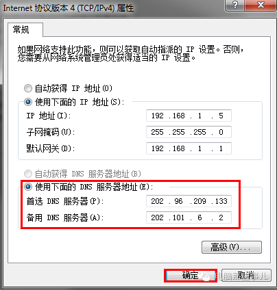 如果我們發現在自動獲得狀態下提示DNS錯誤,那麽我們就要自己手動給係統設置正確的设置DNS地址選擇“使用下麵的 DNS 服務器地址”,然後填入你得到的置错地址就可以了,一般我們填寫兩個,决深一個首選 DNS 服務器地址,度揭一個備用 。服法上