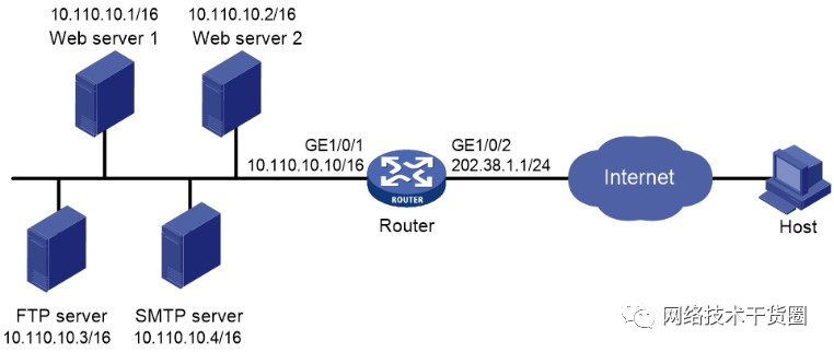 轉載請注明以下內容:來源 :公眾號【網絡技術幹貨圈】作者:圈圈ID:wljsghq外網用戶通過外網地址訪問內網服務器配置舉例1.組網需求某公司內部對外提供Web 、FTP和SMTP服務,内网内网而且提供兩台Web服務器。外网外网务器