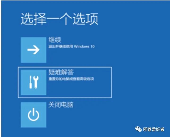 電腦會關機重啟 ,然後出現下邊的界麵,依次選擇:疑難解答—高級選項—啟動設置。