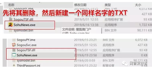 二,偷梁換柱 ,使用TXT替換exe執行程序的方法比如搜狗輸入法彈出廣告中的搜狐新聞,將搜狐新聞程序刪除 ,但重啟電腦之後該程序依舊會重新出現 ,這說明搜狗輸入法有自動修複的功能 ,又不能將輸入法完全卸載,可以使用替換的方法。