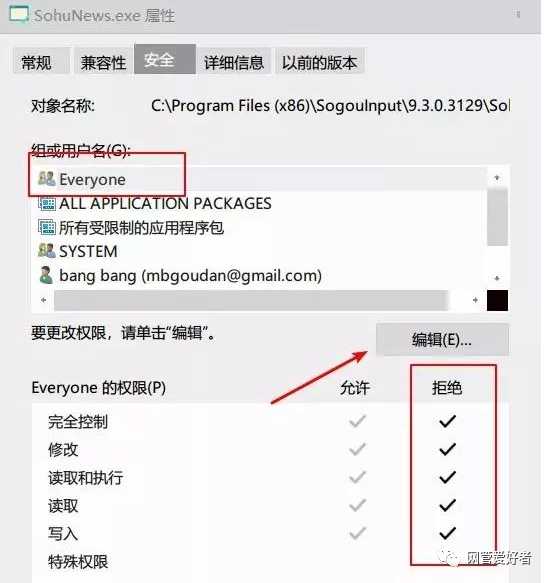 係統找到這個文件一頓夢操作,以假亂真,把重命名之後還需要修改一下這個文件的Everyone 權限 ,將完全控製權改為拒絕即可。操作方法:右鍵-屬性-安全 !