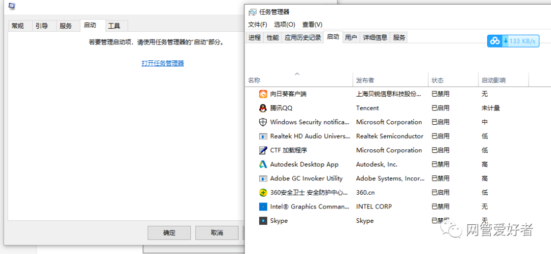 如果是Win10係統的話,直接按下【Ctrl+Shift+ESC】組合鍵打開任務管理器 ,在“啟動”選項卡中操作即可。