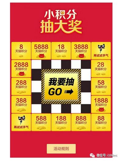 筆者試了幾次 ,抽獎結果都是“再試試手氣”和“8積分”積分活動意在提高用戶的積極性和參與度,而天貓積分活動的玩法比較單一 、中獎率也不高 ,很難調動用戶的熱情積極參與活動3. 有哪些推廣天貓積分體係的推廣限於平台內主要位置的露出 。